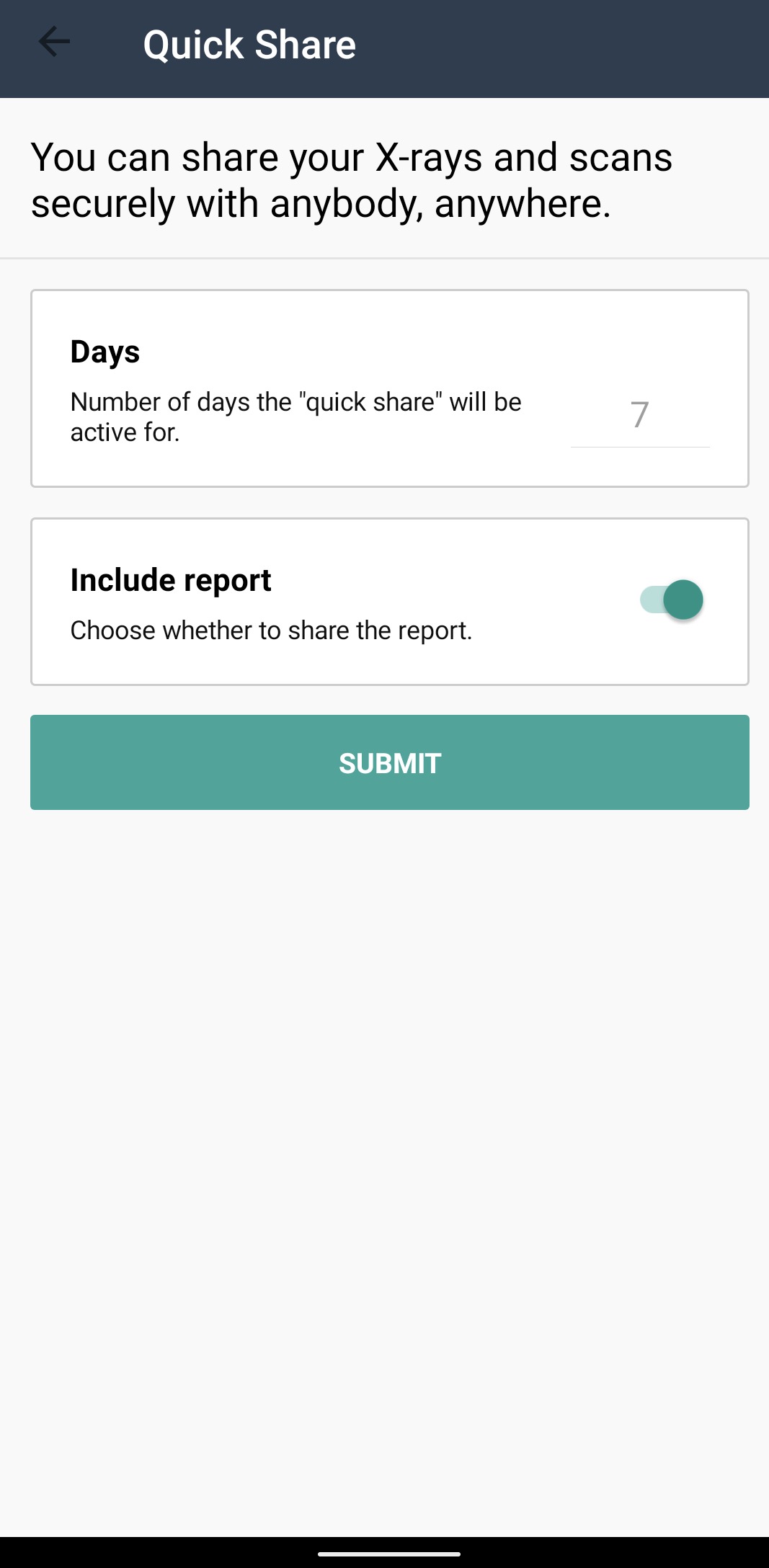 This prevents anyone from sharing your images with the code already in the link and being able to access your scans with only knowing your date of birth.